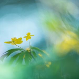 In a small clearing among checkered fritillaries, the yellowish lights of a distant building glow mysteriously. To perfect the composition, the photographer asked her husband to illuminate her red jacket and blue jeans with a torch. After long experimentation, the figure of Liliomfi emerged, with a lily appearing in the place of his heart, standing next to his pregnant lover.